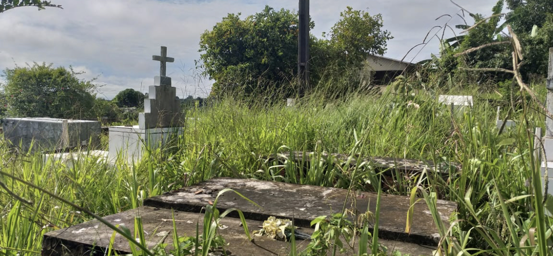 O local está tomado por mato, que cresce até em cima dos túmulos, impedindo inclusive a passagem de pessoas entre um túmulo e outro.