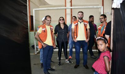 Depois da visita ao bairros atingidos pela enchente, o prefeito em exercício e o presidente da Assembleia foram ao abrigo, no ginásio Alailton Negreiros, onde mais de 50 famílias estão sob os cuidados da prefeitura.
