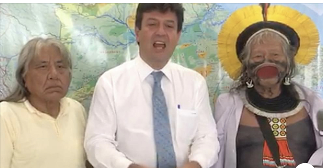 Ao lado dos caciques Raoni Metuktire, da etnia caiapó, e Megaron Xucarramãe, Mandetta disse que a Sesai é uma conquista dos povos indígenas do Brasil