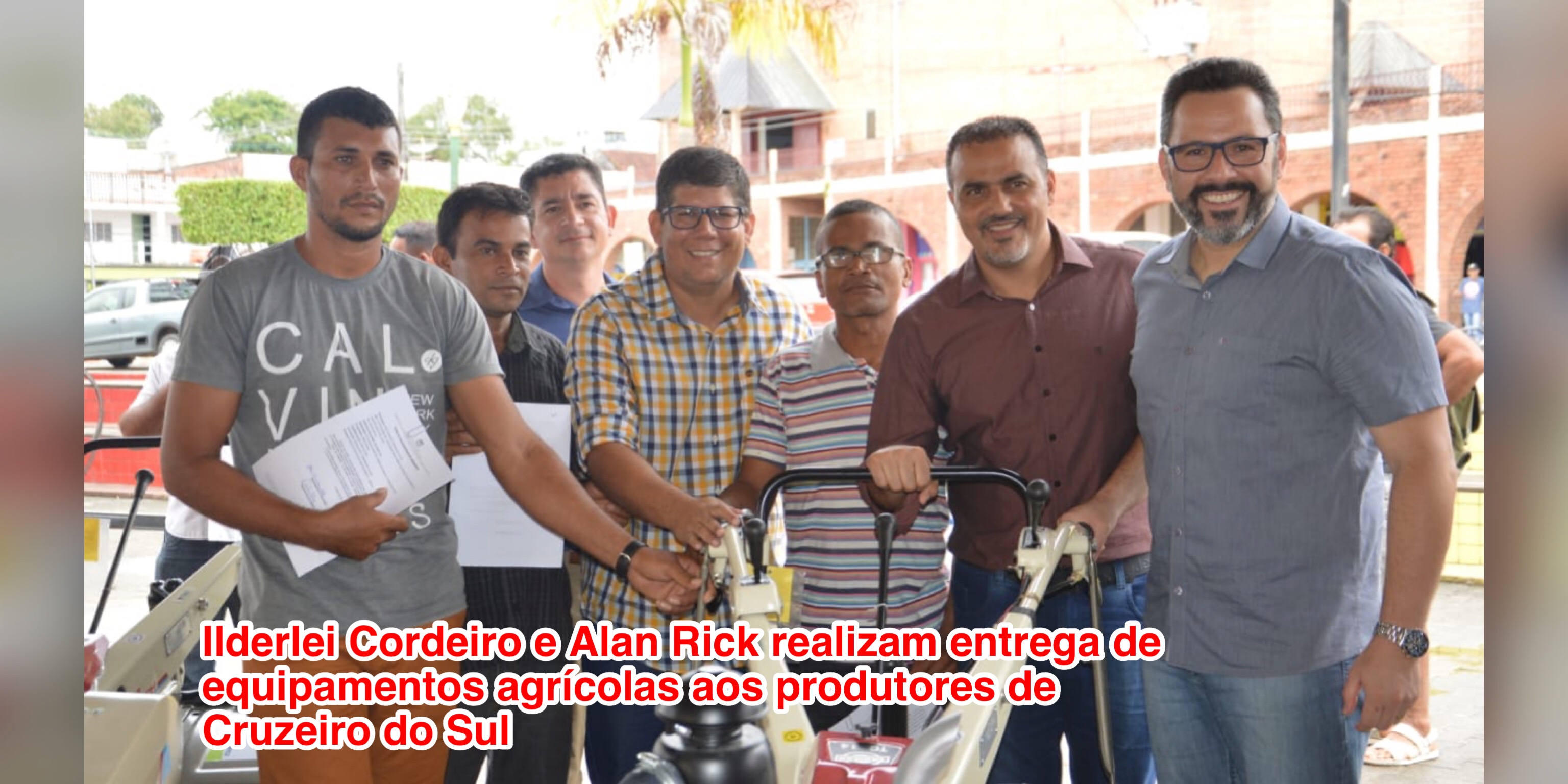 Ilderlei Cordeiro e Alan Rick realizam entrega de equipamentos agrícolas aos produtores de Cruzeiro do Sul
