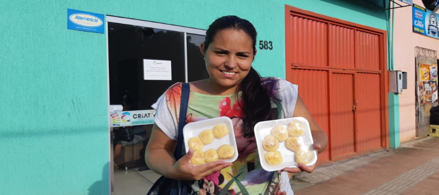 “Acordo umas 4h da manhã para assar meus pães-de-queijo e partir das 7h saio de casa para vender em mercado, loja, geralmente no centro da cidade. Vi que aqui em Cruzeiro do Sul não tinha esse produto, somente outros salgados, comecei a vender e deu certo”, fala a empreendedora, que viu uma oportunidade onde faltava um tipo específico de produto.