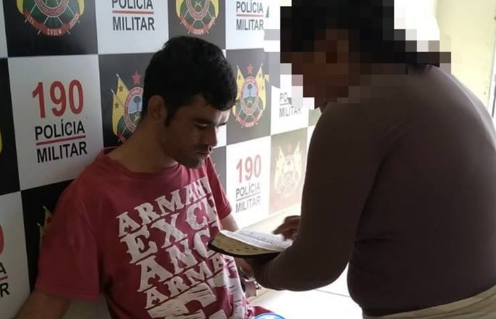 A patrulha saiu em busca do suspeito, localizando-o na entrada do bairro Taquari. A PM ordenou duas vezes que ele parasse, mas ele não obedeceu e acabou sendo detido. Na Delegacia de Flagrantes, a vítima, uma evangélica, decidiu pregar a Palavra de Deus para o ladrão, que cabisbaixo a tudo ouviu.