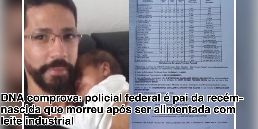 O teste de DNA, exigido pelo por Dheymerson Cavalcante, comprovou que o policial federal é o pai biológico da pequena Maria Cecília, de 2 meses. A criança morreu logo após ter sido alimentada com leite industrial pelo próprio Dheymerson e sua mãe, Maria Gorete Cavalcante.