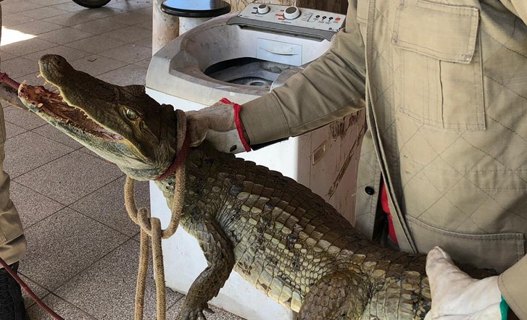 Imagine acordar cedo e ao abrir o banheiro se deparar com um jacaré de aproximadamente um metro pertinho do vaso sanitário? Foi o que aconteceu em uma residência no KM-09 da rodovia AC-40, estrada da Vila Acre, nos fundos de uma loja de pré-moldados, na manhã desta segunda-feira, 22.