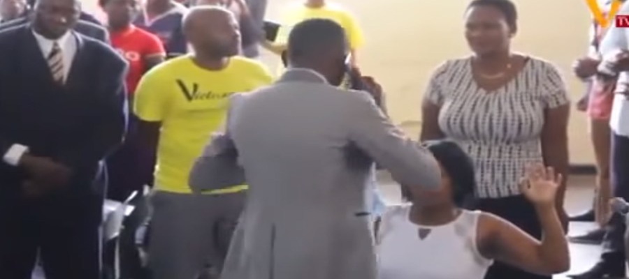 Paul Sanyangore é o líder religioso que aparece no vídeo. Ele se diz o intermediário entre Deus e uma mulher que está ajoelhada no templo.