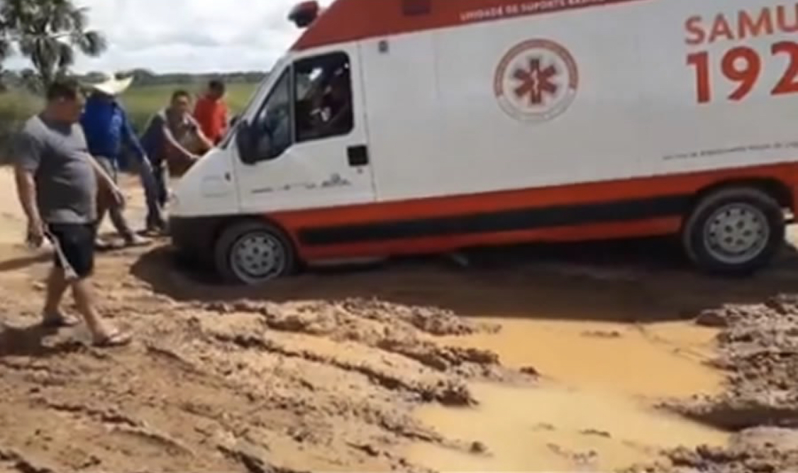O vídeo que circula nas redes sociais mostra uma ambulância do Samu atolada a caminho do aeroporto de Feijó. A ambulância, segundo a narradora, levava um paciente para tomar o avião do TFD para Rio Branco. Mas atolou e não conseguia sair do lugar.