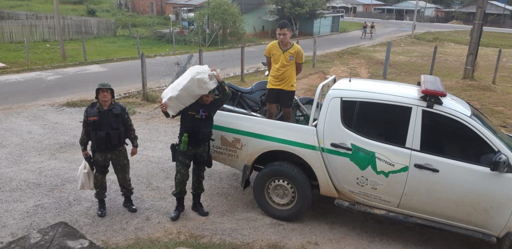 O indivíduo estava junto com outro rapaz que conseguiu se evadir adentrando na mata. Os dois transportavam um pouco mais de 20kg de maconha, em uma moto, quando foi abordado pela polícia que de imediato efetuou a prisão.