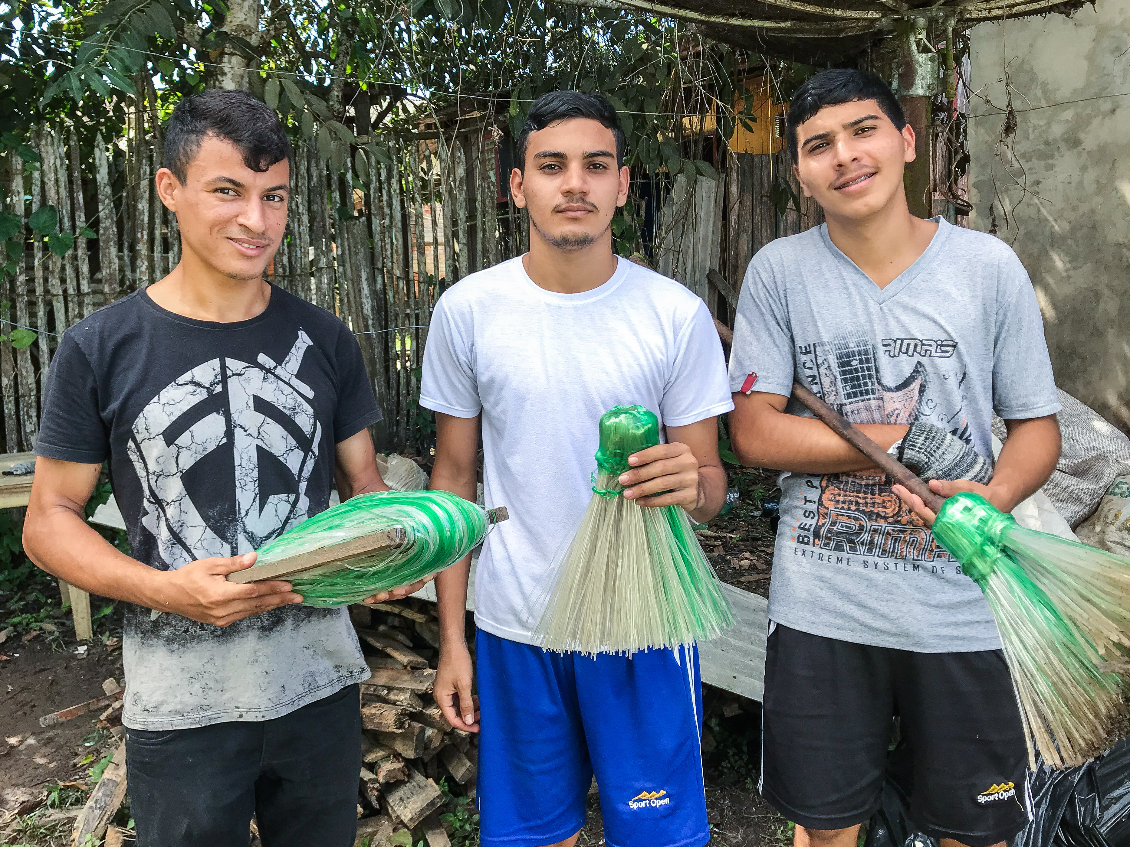 “Meu sonho é ganhar o meu meio de vida com aquilo que eu mais amo, que é a reciclagem e também ensinar as pessoas próximas de mim, para também terem um meio de vida”, afirma Alan, ao lado de seus dois primos, que já aprenderam o ofício e ajudam na confecção. O trabalho, por enquanto, é realizado no fundo da casa de seu tio, que cedeu o espaço para o jovem começar a construir o seu sonho.