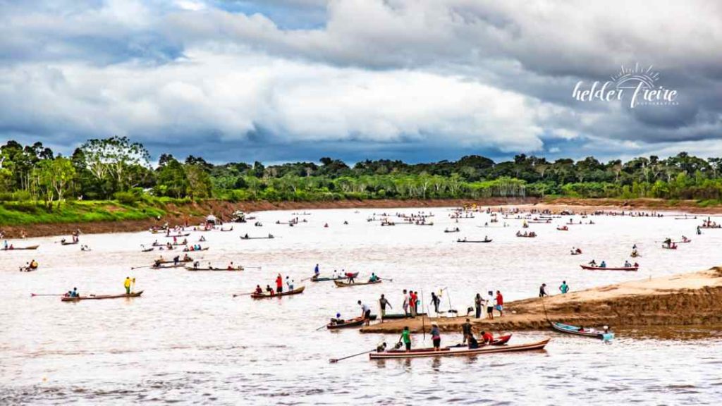 O fotógrafo Helder Freire fez um registro único nesta terça-feira, 14, ao capturar um dos momentos mais tradicionais de Cruzeiro do Sul: a pesca na piracema de mandim. A foto mostra o rio Juruá congestionado com pescadores tentando pegar uma boa quantidade do peixe.