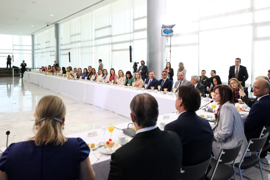 (Brasília - DF, 30/05/2019) Presidente da República, Jair Bolsonaro durante café da manhã com Dias Toffoli, Presidente do Supremo Tribunal Federal; Onyx Lorenzoni, Ministro-Chefe da Casa Civil da Presidência da República; Augusto Heleno, Ministro-Chefe do Gabinete de Segurança Institucional da Presidência da República; Major Vitor Hugo, Deputado (PSL/GO), Líder do Governo na Câmara dos Deputados; Senadoras e Deputadas Federais. Foto: Marcos Corrêa/PR