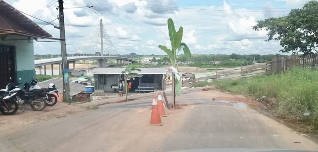 Um protesto inusitado ganhou repercussão nas redes sociais. Moradores plantaram bananeiras em buracos da Rua Alfredo Teles, para chamar a atenção da Secretaria de Obras e cobrar manutenção no local.