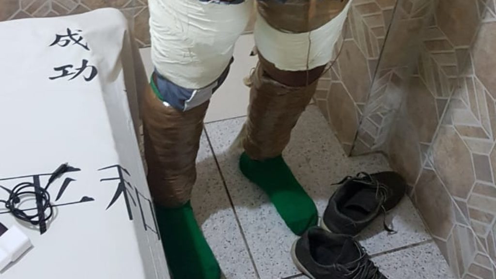 Um homem foi preso pela Polícia Federal na noite desta quinta-feira (2), em Fortaleza, com três quilos de pasta base de cocaína escondidos nas coxas e canelas. O suspeito utilizou fita adesiva para prender a droga no corpo e borra de café para tentar esconder o cheiro do material. Dois cearenses também foram detidos durante a ação.