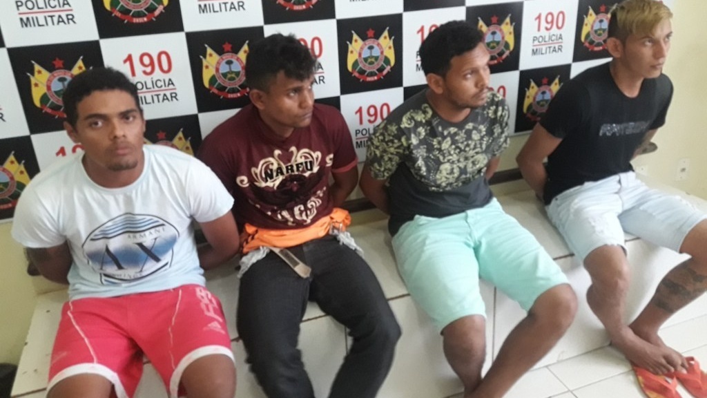 Policiais Militares do 3°Batalhão prenderam na tarde desta terça-feira (14,) Luiz Bonaparte Nunes, 23 anos, Edilson da Silva Lima, 24 anos, Erivan Moura de Arruda, 19 anos, e Genilson Pereira, de 26 anos. Eles são acusados de cometer roubos na capital. A prisão aconteceu na rua do Futuro, no bairro Boa Vista, na Sobral.