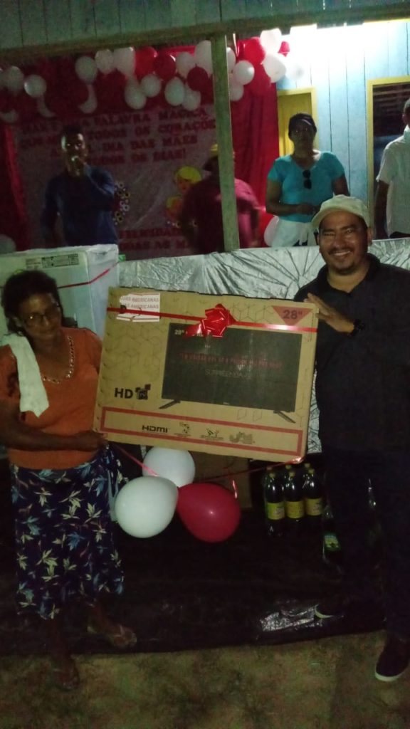 Acompanhado dos secretários de Cultura, de Assistência Social e dos vereadores Samot e El Fazendeiro, o prefeito destacou o papel fundamental das mães e realizou uma confraternização, que culminou no sorteio de brindes: geladeira, ventilador, televisão, entre outros eletrodomésticos e objetos.