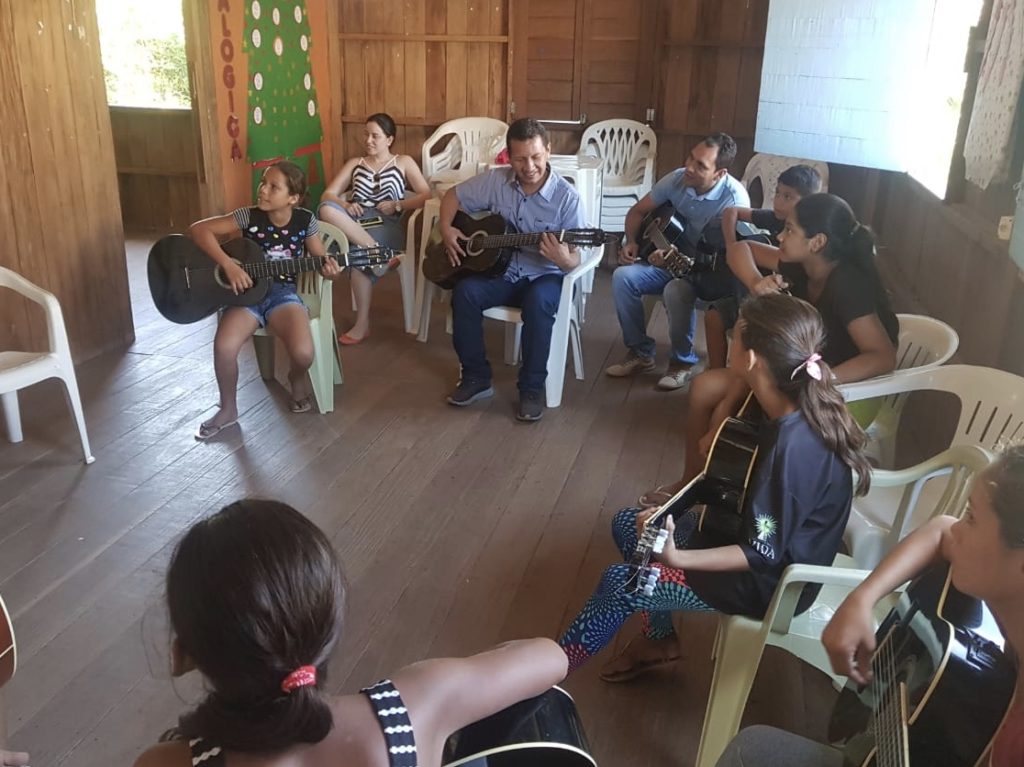 Adolescentes também participam de aulas de musicas ofertado pelo CRAS. “Aqui aprendemos a tocar diversos instrumentos, além de realizamos apresentações”, disse uma das jovens.