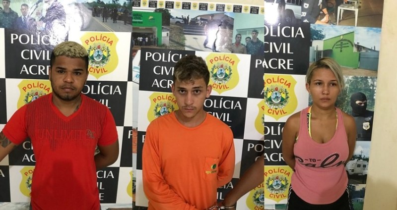 Rilvan Silva Evangelista, de 28 anos, Taiane Barbosa Silva, de 25 anos e Mateus da Silva, de 23 anos, foram presos na Rua 06 de Agosto no bairro Boa União pelos crimes de tráfico de drogas e organização criminosa, durante um cumprimento de mandado de busca e apreensão na tarde de quinta-feira (23).
