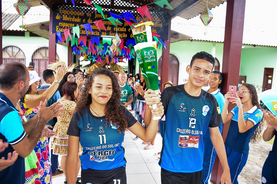 O pontapé inicial dos jogos escolares teve início nesta segunda-feira, 03, com uma caminhada dos atletas estudantis pelas principais ruas de Cruzeiro do Sul com a tocha olímpica. Os alunos saíram da Escola Craveiro Costa, passaram pelo Instituto Santa Terezinha, Escola São José e finalizaram na Flodoardo Cabral.
