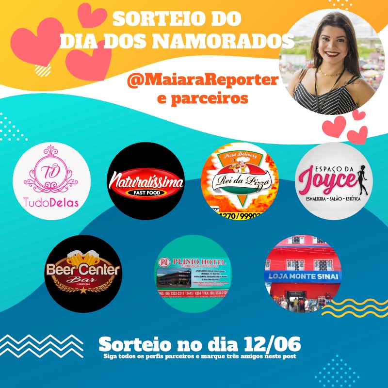 A Coluna Popular na Rede realiza sorteio do Dia dos Namorados. Para concorrer, basta seguir digital influencer Maiara Cristina no Instagram e os apoiadores que serão descritos no post oficial, além de marcar três amigos.