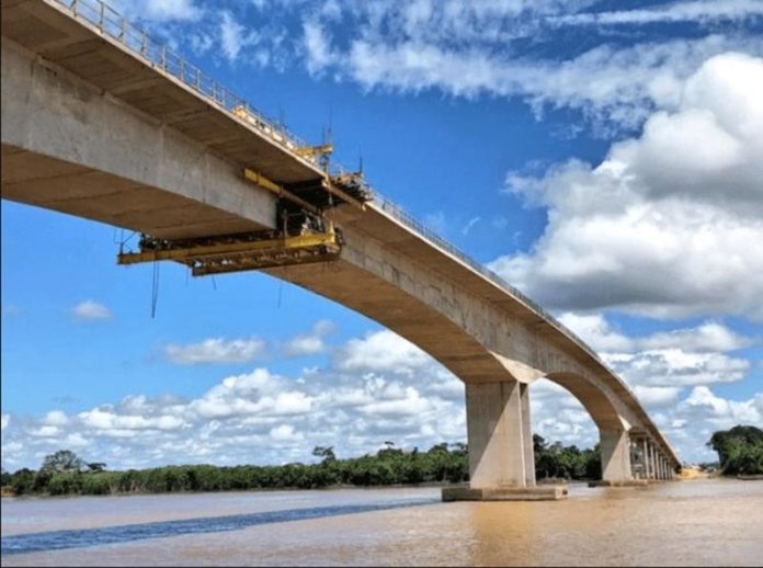Com 95% do trabalho executado, a ponte sobre o rio Madeira se aproxima aceleradamente da fase final dos trabalhos. Está programada para até o dia 29 deste mês a concretagem dos últimos metros do vão central. Depois isso até os caminhões poderão trafegar por ela para levar até o outro lado o aterro necessário ao encabeçamento que vai ligar definitivamente a obra à BR-364, na região de Vista Alegre do Abunã.