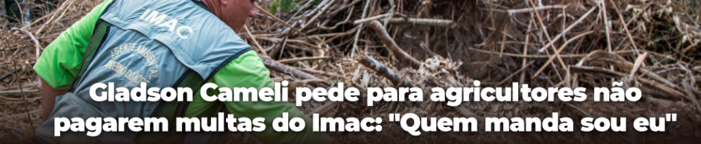 “Quem for da zona rural, se seu Imac tiver multando alguém, me avise e não pague nenhuma multa, porque quem está mandando agora sou eu”, declarou Gladson, pontuando que não deixaria que o órgão atrapalhasse quem quisesse trabalhar.