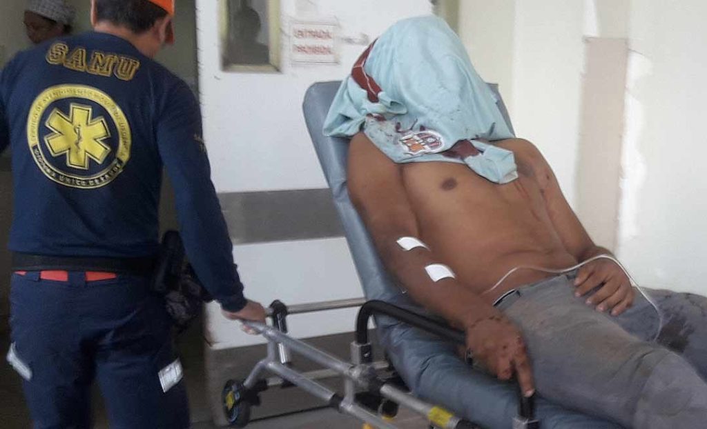 O tiro atingiu as costas, cabeça e braço da vítima que foi conduzida ao Pronto Socorro da Capital após ser estabilizada pelos paramédicos do Serviço de Atendimento Móvel de Urgência (Samu).