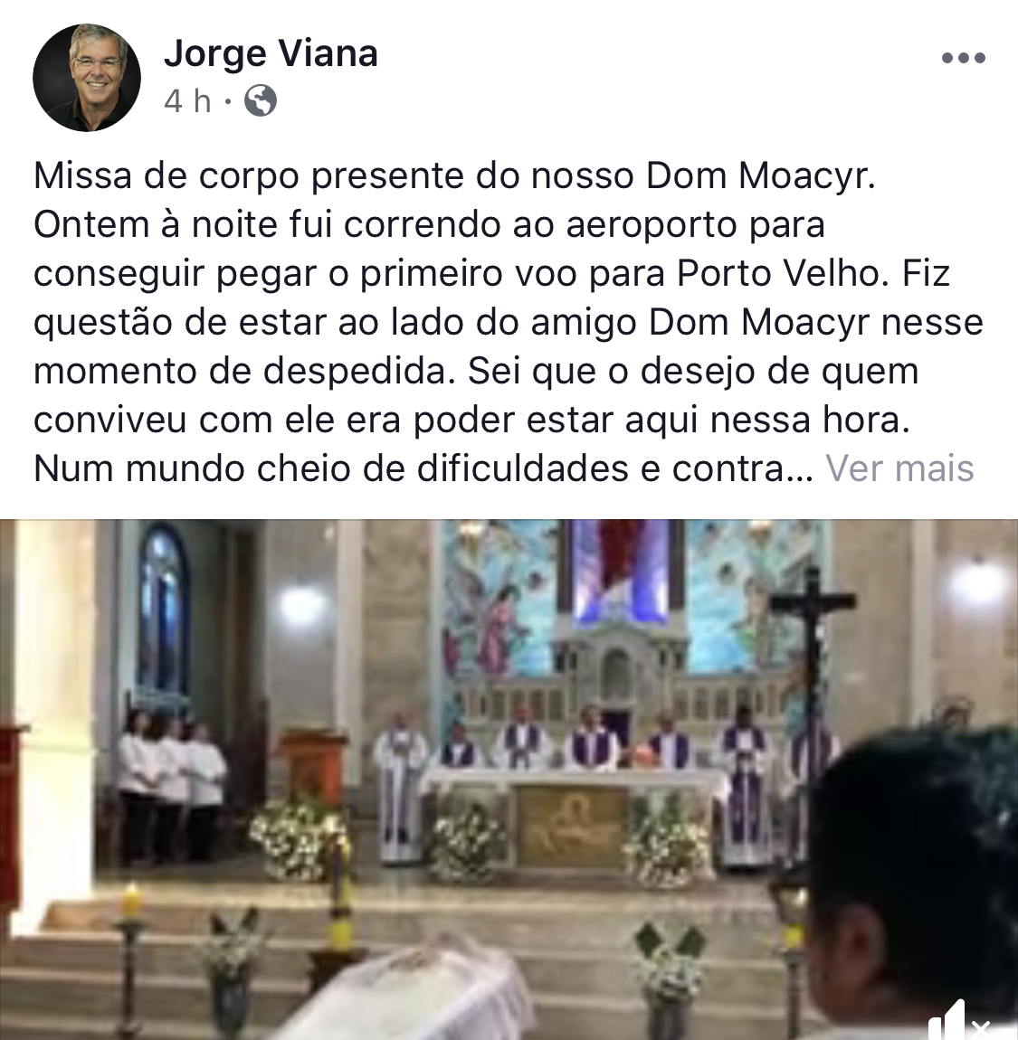 O ex-senador Jorge Viana (PT) fez questão de comparecer ao velório do bispo Dom Moacyr Grechi, que faleceu na noite da última segunda-feira, 17, em Porto Velho. O corpo foi velado na Catedral Metropolitana da capital rondoniense.