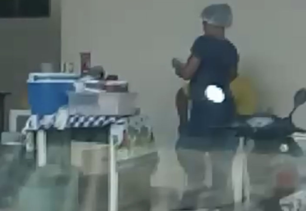 “Como vocês estão vendo, a mulher tá limpando o prato que pegou do lixo para botar o lanche que você vai comer”, diz o homem durante a filmagem.