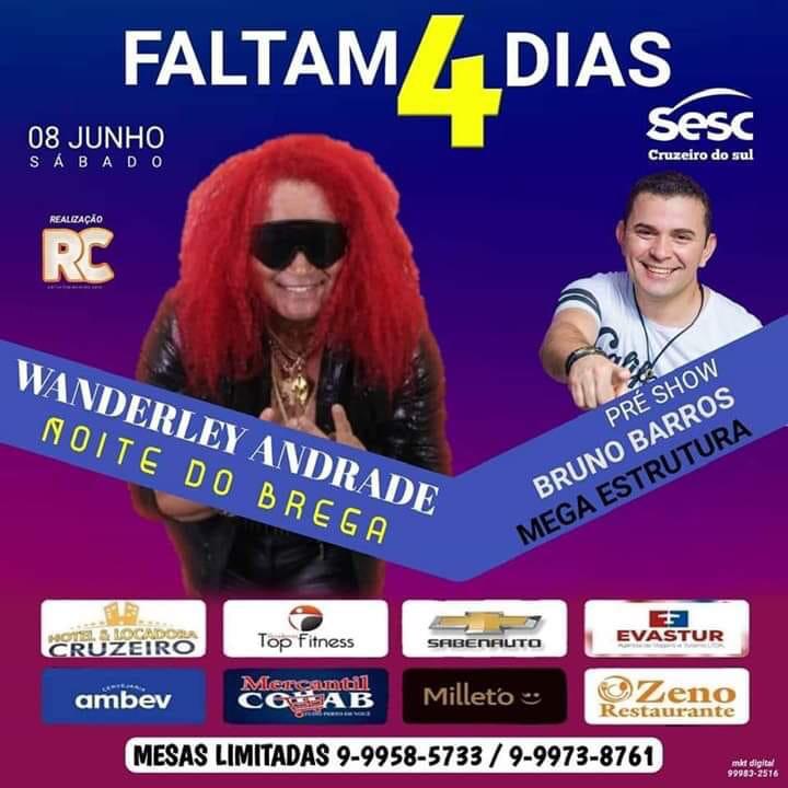 O cantor brasileiro Wanderley Andrade chegou nesta última quarta-feira (5), à Cruzeiro do Sul, onde mais uma vez irá se apresentar. O show do artista será neste sábado, 8, no Sesc.