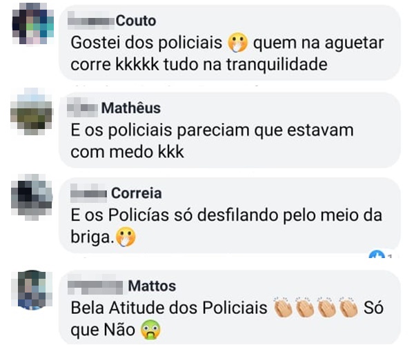 Internautas e usuários do aplicativo WhatsApp, fizeram questão de criticar a ação dos policiais, já que segundo alguns, uma ação imediata de contenção à briga deveria ter sido tomada.