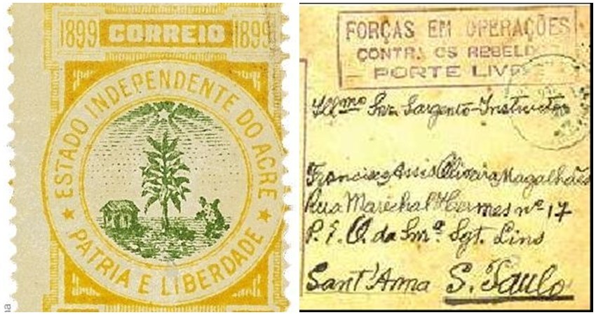 Galvez então encarregara o amigo de cunhar o selo. Em Manaus, a tarefa não foi possível porque as casas impressoras, todas alinhadas com os interesses dos que não queriam a independência do Acre, então o maior produtor de borracha do país, não atenderam o pedido. O selo teve que ser impresso em Buenos Aires, na Argentina, com elementos evocativos sobre o Acre: uma estrela altaneira e solitária, uma casinha de seringueiro, uma seringueira estilizada e uma tartaruga em pé, em posição de combate conforme se ver hoje na TV nos desenhos animados das chamadas “Tartarugas Ninjas”.