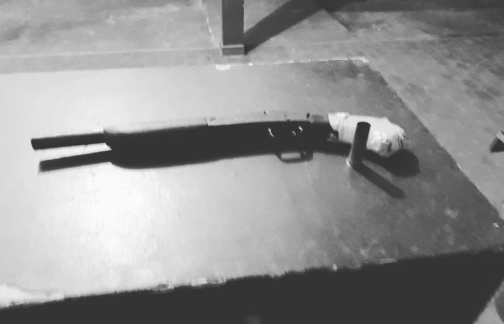 Segundo informações o mesmo estava atirando em via publica. Ao avistar os policiais chegando, o homem tentou se evadir e jogou fora a arma de fogo, calibre 16.