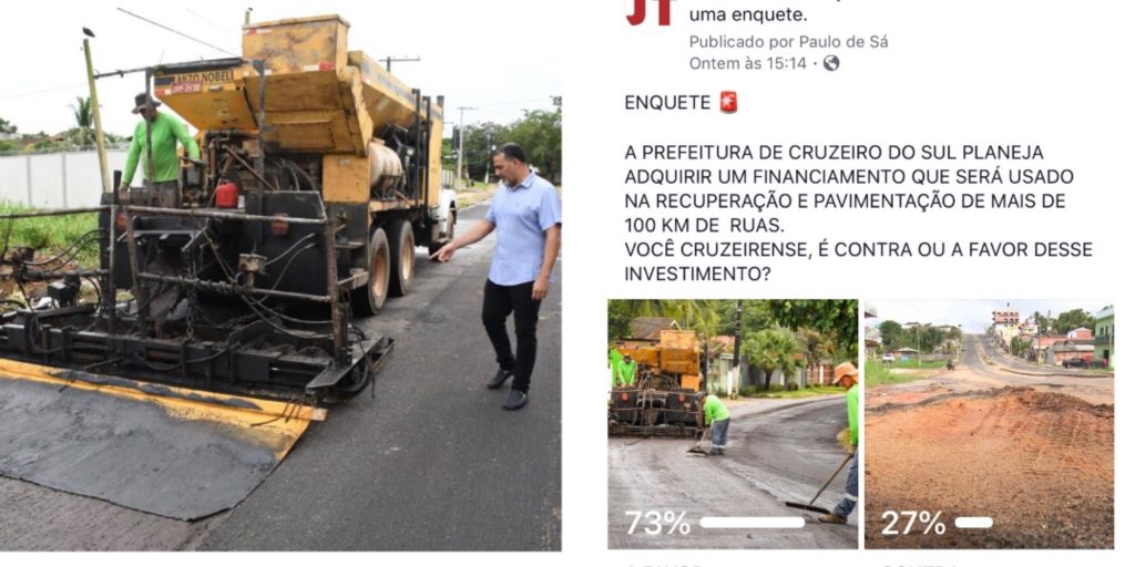 Mais de 70% da população de Cruzeiro do Sul apoia a ideia do Prefeito Ilderlei Cordeiro de obter financiamento para investir na recuperação da malha viária do município. O recurso será destinado para a recuperação de mais de 100 quilômetros de ruas.