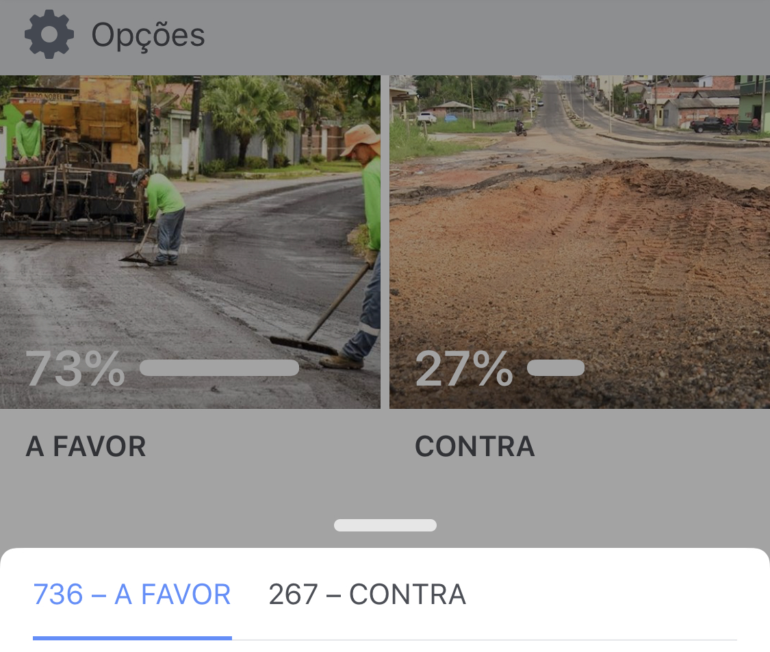 Mais de mil pessoas participaram da enquete virtual, sendo que 736 pessoas foram favoráveis e 267 se manifestaram contrárias ao investimento.