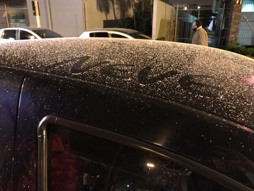 Flocos de neve caíram em São Joaquim, na Serra catarinense, na madrugada desta sábado (6), segunda a Central NSC de Meteorologista. O fenômeno foi de fraca intensidade, mas foi possível pela avanço da umidade. A rodovia da Serra do Rio do Rastro segue interditada nesta manhã por gelo na pista.
