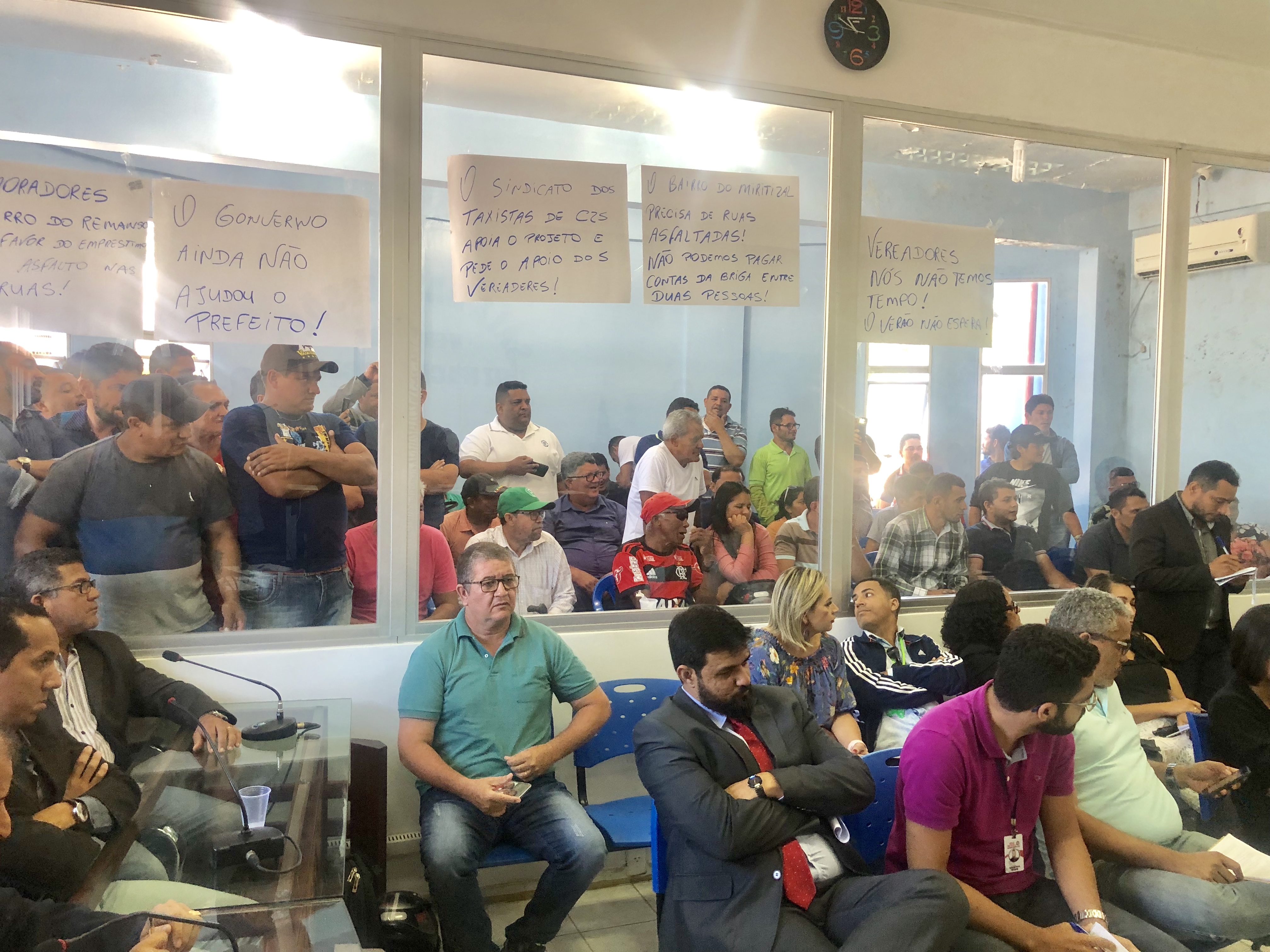 A sessão se iniciou 9 horas e, imediatamente, foi suspensa, retornando três horas depois. Tempo que o vereador Antônio Cosmo, presidente da comissão de finança, utilizou para dar um parecer, orientando aos demais a votarem contra o projeto.