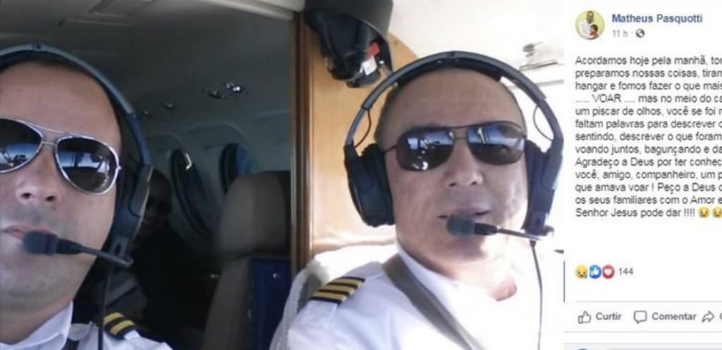 Depois do ocorrido, Pasquotti publicou uma homenagem ao amigo no Facebook. No texto relembra que foram cinco anos voando juntos, um período de muita amizade e alegria e que, em um “piscar de olhos”, no meio do viagem, o amigo “se foi”.