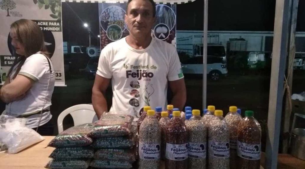 Firmino conta que no município eles já produziam o feijão, mas não conseguiam dar vazão à produção. Até que em 2015, com 600 kg de feijão que estavam empacados, o Serviço Brasileiro de Apoio às Micro e Pequenas Empresaso (Sebrae/AC) lançou a ideia de fazer um festival, o Festival do Feijão.