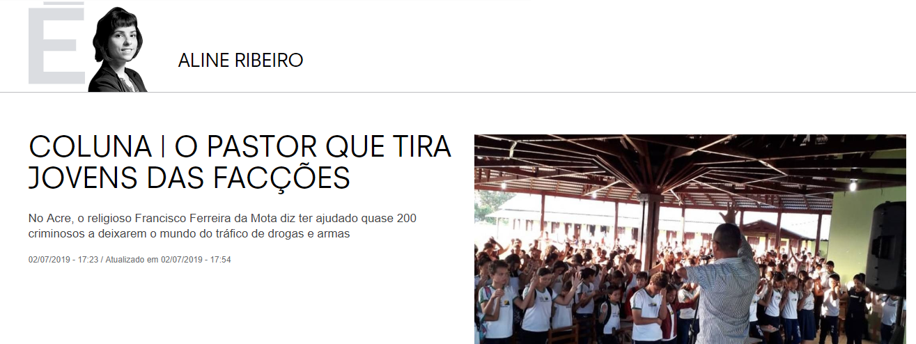 Desta vez, a jornalista e colunista Aline Ribeiro da Revista Época – O Globo, foi autora de uma coluna especial onde relata a história de vida e trajetória do pastor após sua caminhada com Cristo.