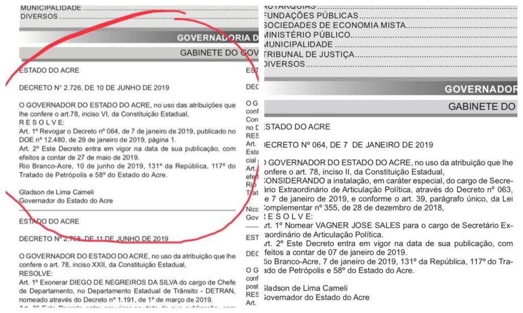 O decreto de exoneração teve publicação no Diário Oficial do Estado no dia 12 de junho de 2019, Dia dos Namorados. O ato de exoneração foi assinado pelo governador em exercício, Wherles Rocha, no dia 10 do mês passado.
