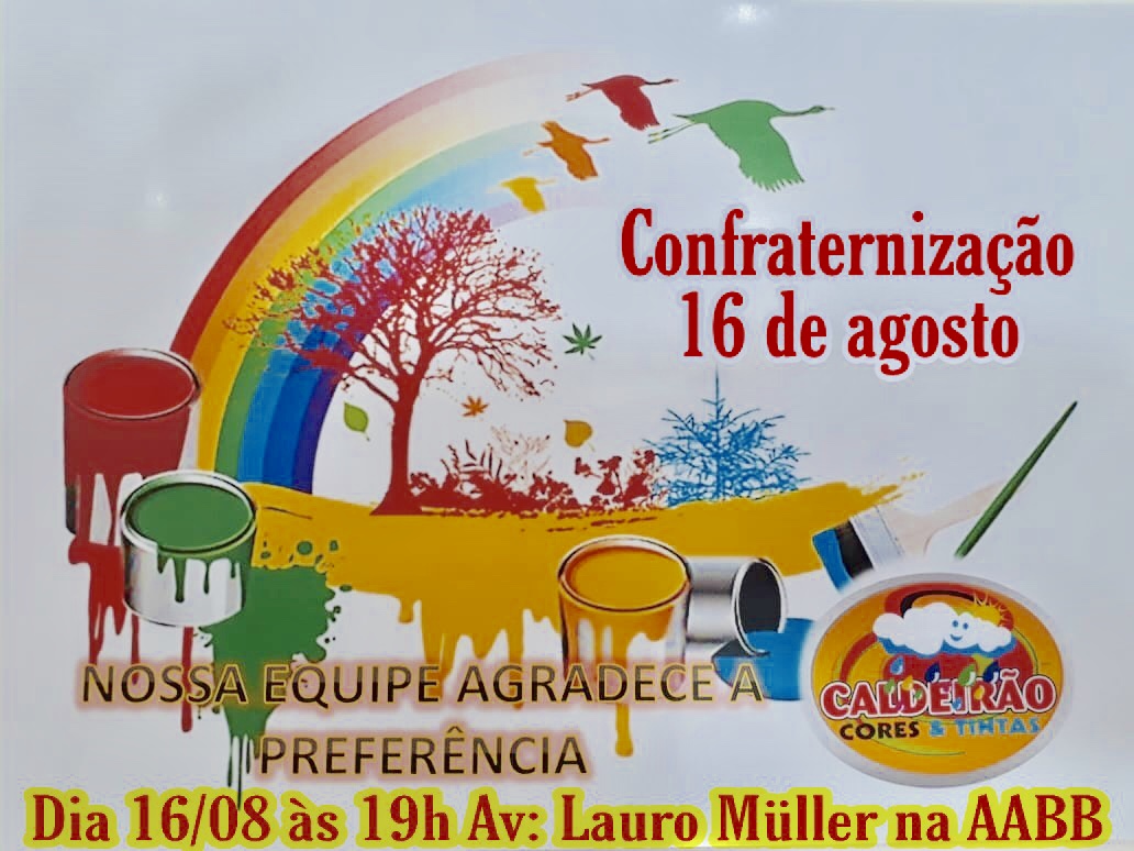 A Caldeirão Cores e Tintas realiza na próxima sexta-feira, 16, a sua tradicional festa de confraternização com os pintores de Cruzeiro do Sul. De acordo com William Pimenta, gerente da empresa na cidade, a festa já faz parte do calendário de programação, e é uma forma de agradecimento aos profissionais que mantém fidelidade na compra de tintas mobiliárias e automotivas na loja.