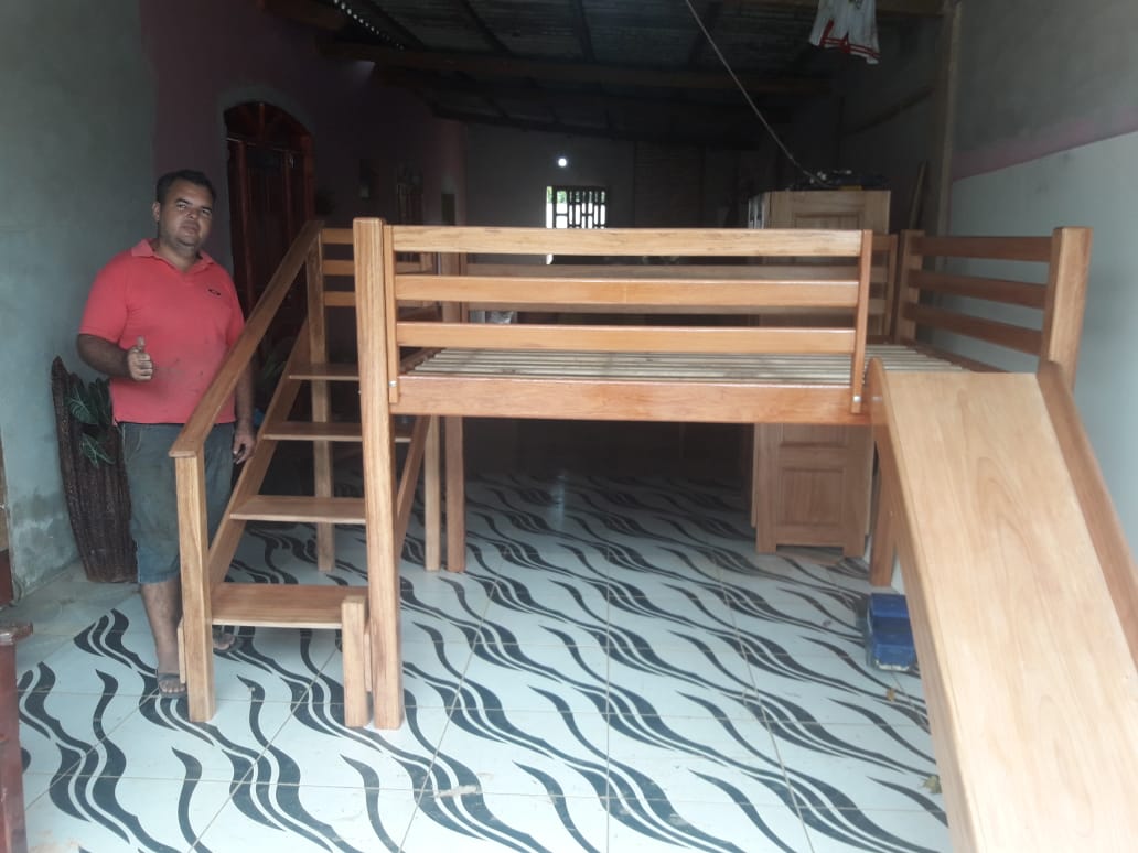 Assim pode ser para quem comprar uma das camas projetadas por Luciano Rodrigues, do município de Mâncio Lima. O marceneiro – que fabrica móveis reaproveitando restos de madeira que seriam descartados – projetou uma cama infantil com escadinha e escorregador.