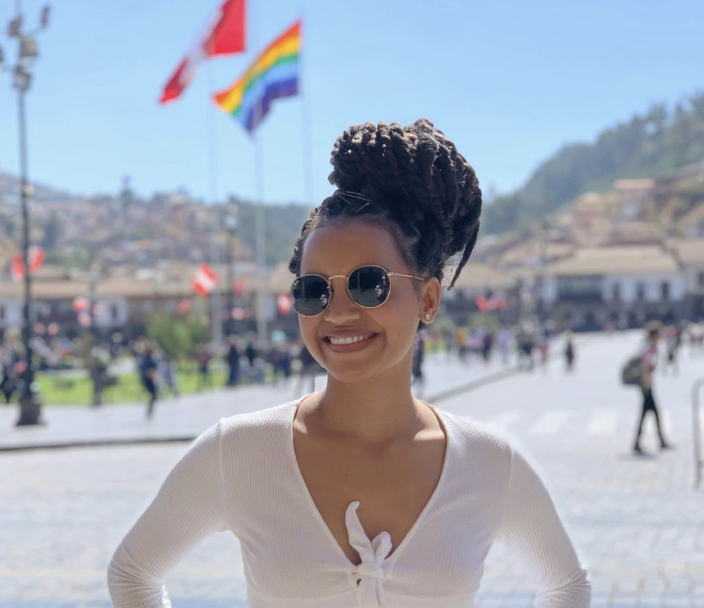 De dreads nos cabelos, a campeã do reality show da TV Globo em 2018 conversou com os fãs virtuais diretamente da cidade de Cusco, localizada no Peru.