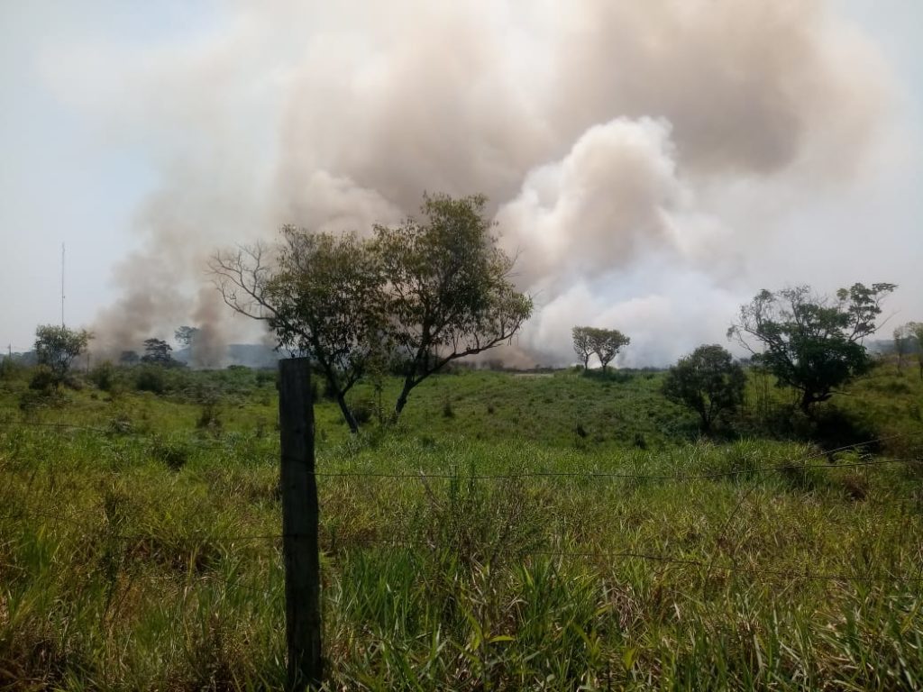 Um incêndio de grandes proporções foi registrado no início da tarde desta quinta-feira (15), o fogo atinge uma área de vegetação próxima ao conjunto habitacional, Miritizal Novo.