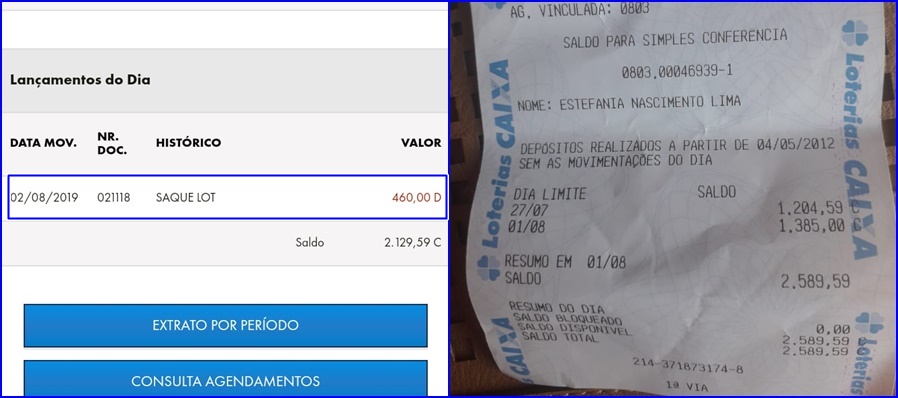 A vítima, a aposentada Estefânia conta que não recebeu o comprovante de saque. “Só me deram o valor. E essa já é a segunda vez que acontece isso comigo, elas fazem isso por que pensam que a gente não sabe de nada. Mas quando a gente chega em casa e olha pelo aplicativo, está faltando dinheiro”.