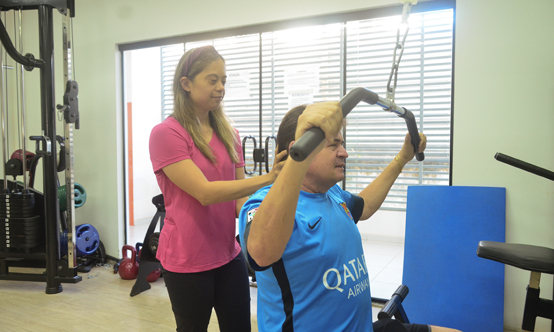 No turno vespertino, a estagiária auxilia os alunos nos equipamentos, orienta acerca do uso da estrutura, bem como sobre a postura correta na execução dos exercícios. Contratada há dois meses, já detém propriedade sobre a rotina de musculação. Aos que desejam ser fitness, ela já alerta que os treinos se iniciam com aquecimento na esteira.
