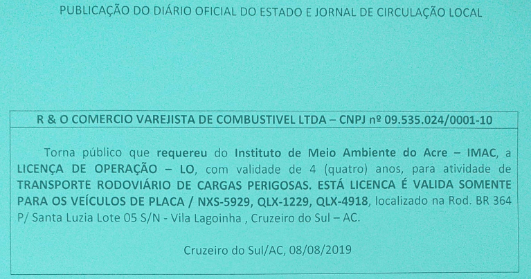 PUBLICAÇÃO DE LICENÇA DE OPERAÇÃO