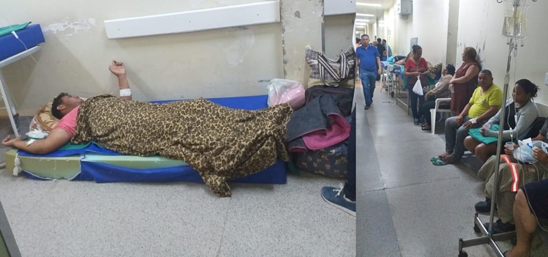 Um dos pacientes que se encontra no Pronto Socorro de Rio Branco enviou à redação da Folha do Acre imagens que mostram pacientes com soro deitados no chão, além de dezenas de outros que ocupam corredores.