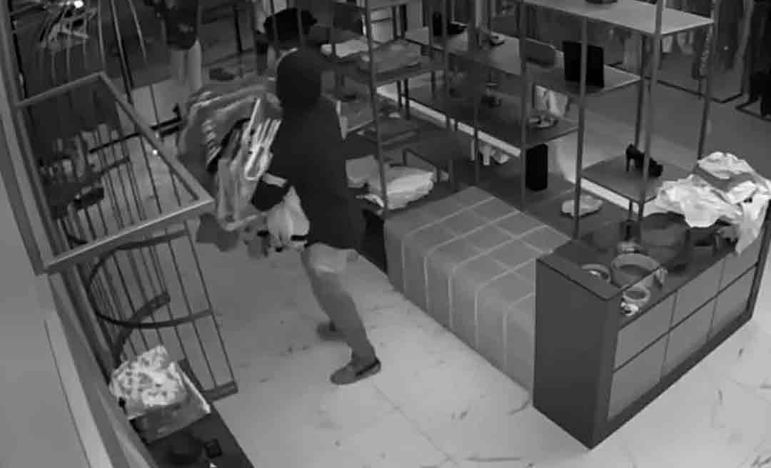 Dois homens furtaram todas as roupas de uma loja do Espaço Village, em Rio Branco, na madrugada desta quinta-feira (8), conforme mostram câmeras do circuito interno de segurança do estabelecimento.