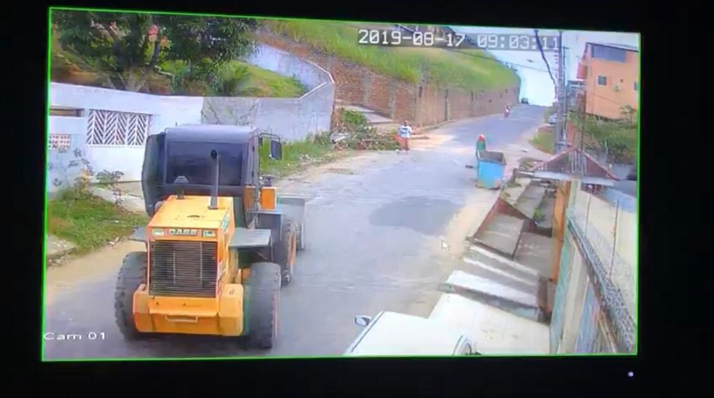Segundo testemunhas que estavam no local, a máquina perdeu o freio e acabou batendo em um poste e por pouco não atingiu uma oficina onde pessoas estavam trabalhando.