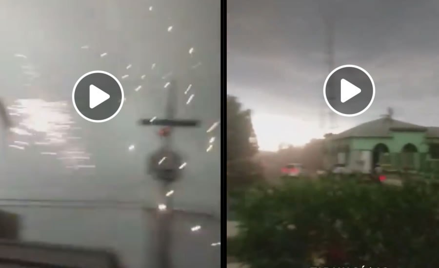 Imagens divulgadas por pessoas que moram na ‘Terra do Abacaxi’, mostram telhas sendo arrancadas, curto circuito em poste de energia elétrica e árvores sendo atingidas pelos ventos.
